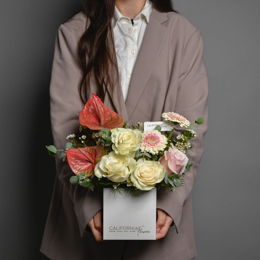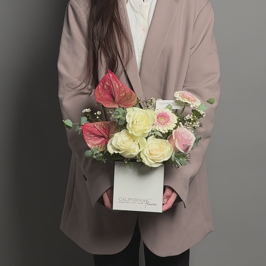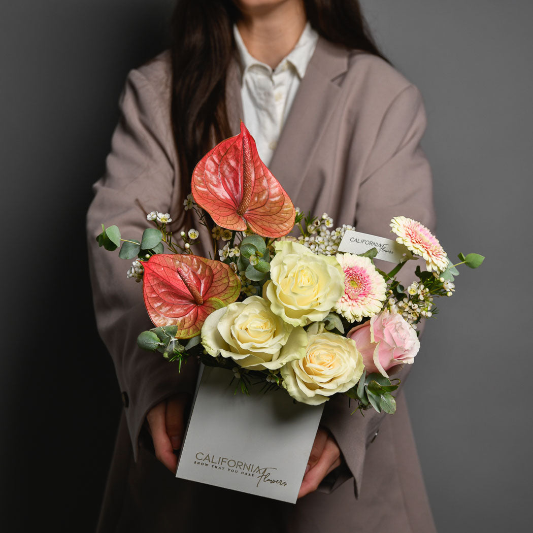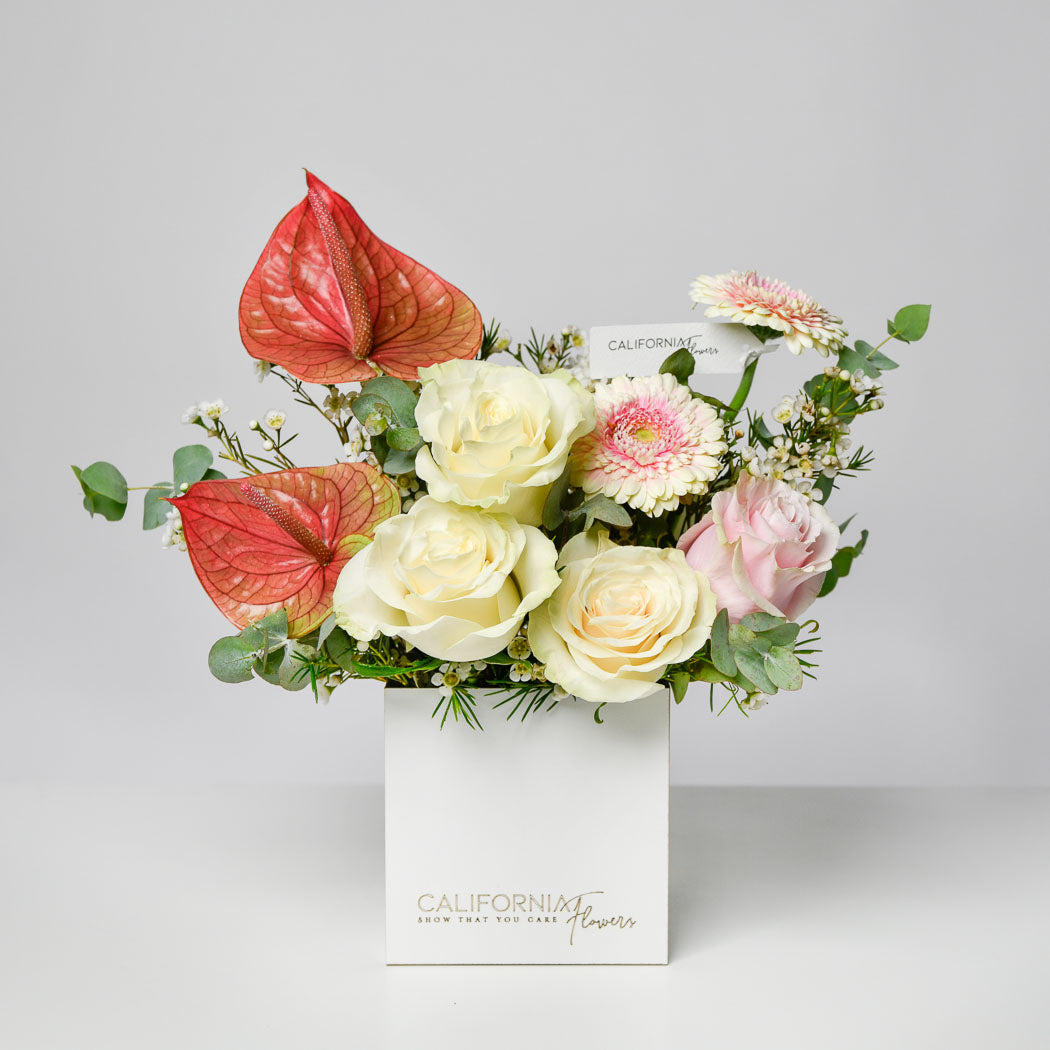 INTRETINERE Aranjament in cutie cu gerbera si anthurium