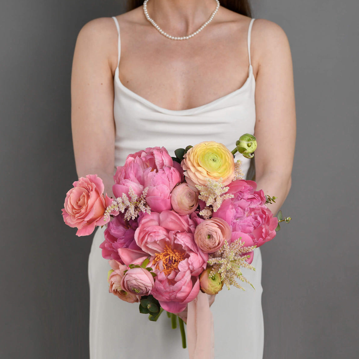 INTRETINERE Buchet de mireasa cu bujori si trandafiri