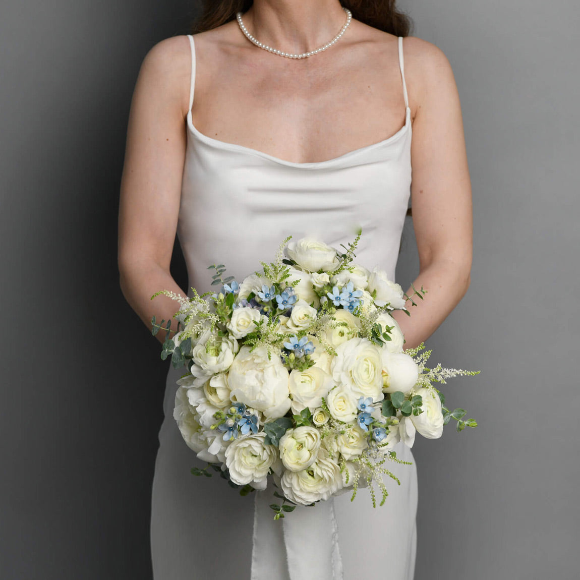 INTRETINERE Buchet de mireasa cu ranunculus si bujori albi