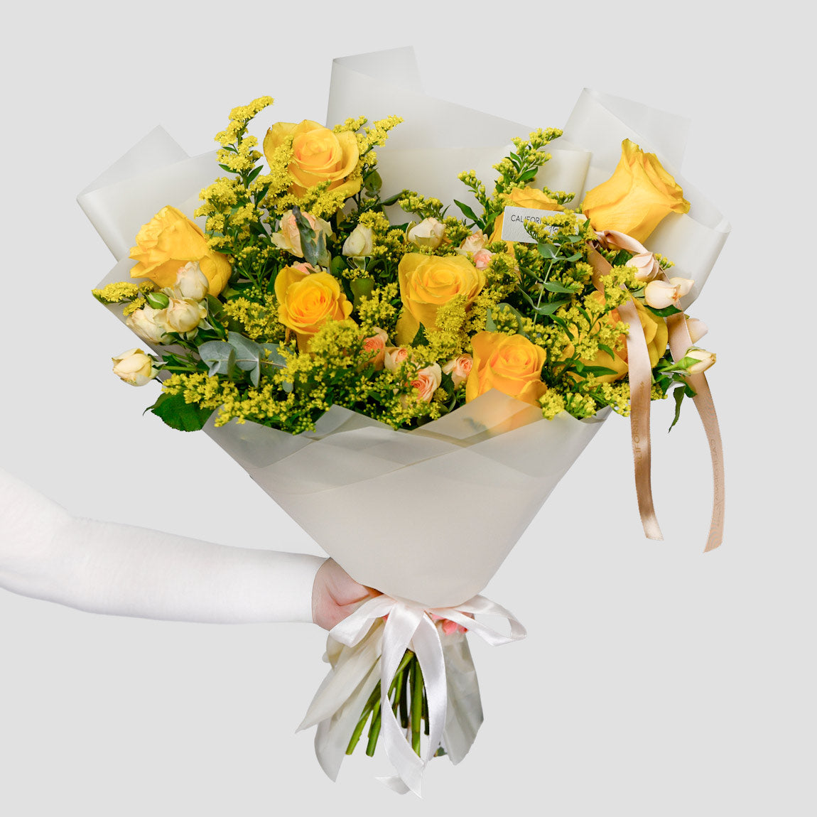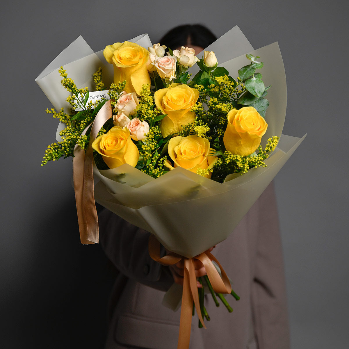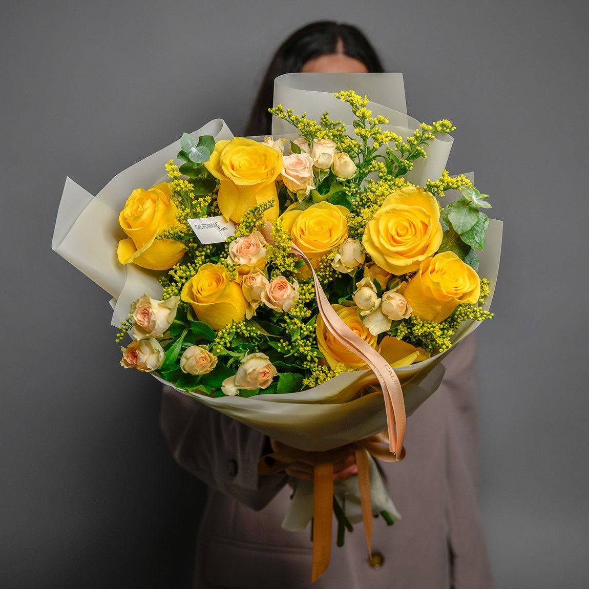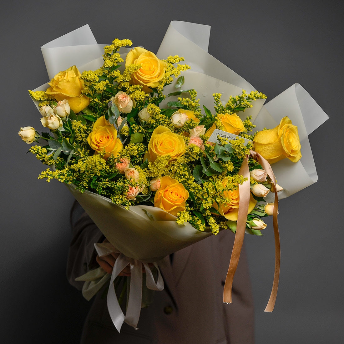 INTRETINERE Buchet trandafiri galbeni si solidago